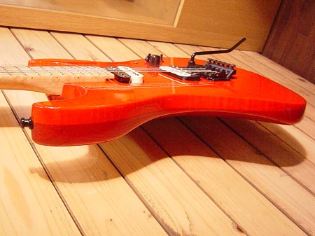 国内ハンドメイド工房でも知られる「アーテックス」製のオーダーギターです!なんとボディートップ?(むしろ半分)はトラ目の美しいメイプル材を贅沢に使用、バックのマホガニーの目も良く、見た目にもサウンド的にもバランスの良い一本です。ネックジョイントは独創的な3点ボルトオンとなっており、ハイフレットの演奏性はかなり高くなっております。ブリッチにはオリジナルフロイドローズをマウント!ピックアップは不明でございます。プレイヤービリティーの高い一本をお捜しの方には是非ともお勧めです! 汎用GIGケース 付属。