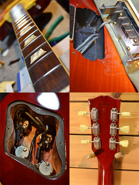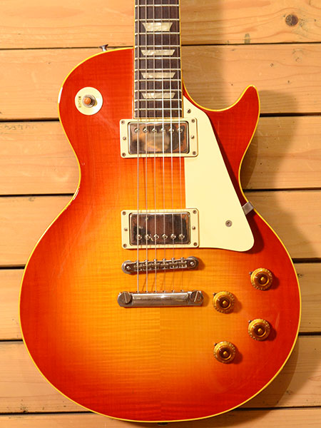 1982年製。Super RealからMint Collectionに移行する過渡期の貴重な個体。EGF-850からEG59-85に変わるに当たりディープジョイントの採用。ピックアップにはPAFライクながら解像度の良くなったDouble Trickを採用。EGF譲りの細めのトラ杢トップにラッカーフィニッシュも手伝ってかなり良いオーラを出しています。過渡期故にあるカタログと違う点がSuper Realロゴが残っている点とボディーバック材が1ピース(カタログスペックは2P)である事です。そして本機最大の特筆すべき点はコンディションの良さです!近年物と見間違えるほど艶の残ったボディーやペグなど金属パーツの状態の良さ!フレットは恐らく擦り合せ歴は無く、しかも演奏による凹みもございません。もちろんパーツ等もすべてフルオリジナル!当店でもペグビスや裏パネビスなど順番が変わらないよう気を付けてクリーニング・セットアップさせて頂きました(いつもですが。。)。もちろん38年前の個体ですのでチップ傷やセルの痩せなどはございますがそれを踏まえても大変綺麗な一本です!滅多に出てこない貴重な個体!お早目に! 付属品:汎用セミハードケース(HOSCO AC-0707LP)。