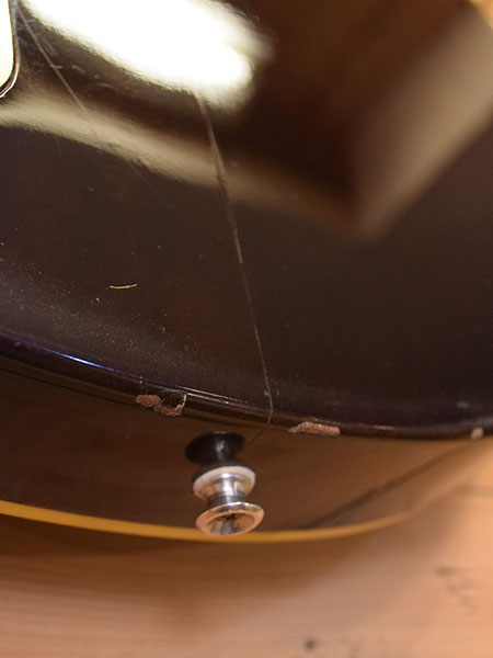 1976年製。70年代のギブソン同様メイプルネックに無垢の2Pメイプルトップ+バックはパンケーキ構造ボディーを採用した人気グレードです。ピックアップにはパワー感のあるU-2000が搭載されており乾いた伸びの良いサウンドが楽しめます(リアピックアップは1978年製のU-2000に交換されています・PUカバーは前後とも外されています)。トグルスイッチ裏蓋が黒色の物に交換されています。ボディーバック下側にクラックがございます(ボディー継ぎ目)。これ以上開く事は無いかと思われますがご購入の際はご承知ください。その他は年式の割に綺麗なコンディションを保った個体でございます。フレット残量は6〜7部山程度。ネックコンディションも良好です。気になった方は是非この機会に! 付属品:当時物汎用ハードケース。