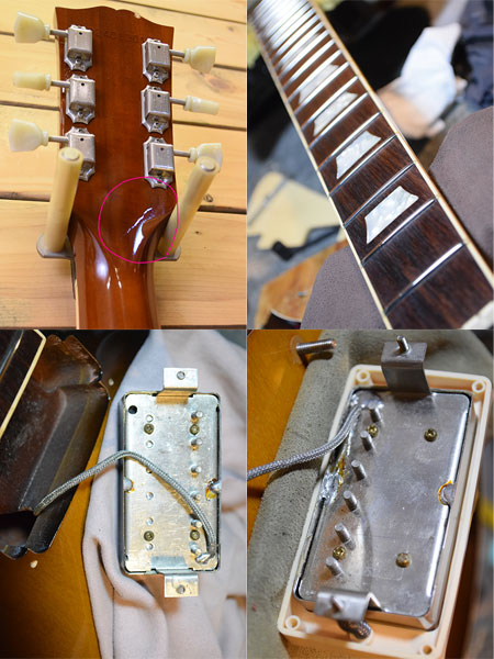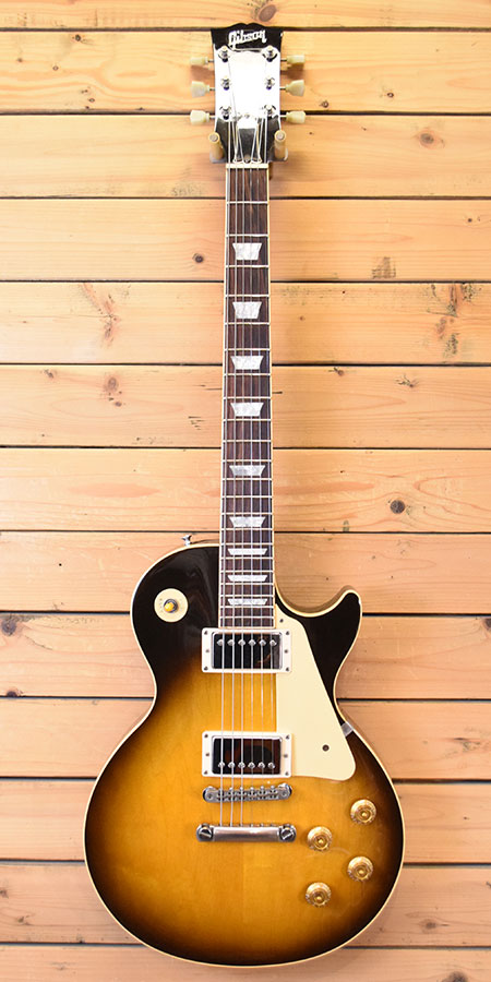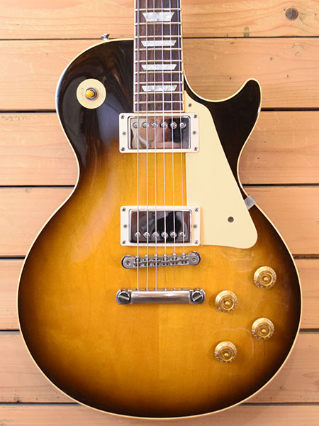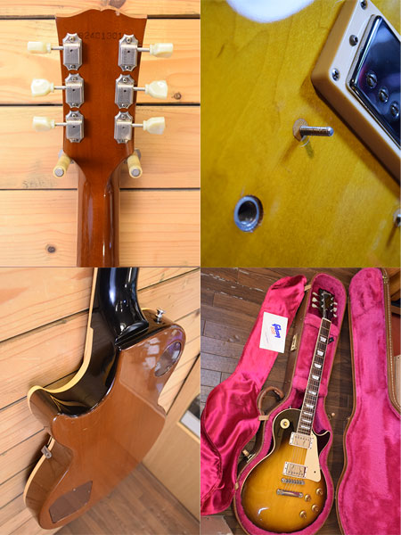 1991年製。近年では中古市場でも少なくなってきた90年代スタンダード!ハードメイプルトップらしい伸び良く低音の輪郭があるサウンドが魅力な一本です。変更箇所はペグがブッシュ式のギブソンクルーソンに交換・ブリッジはナッシュビルからABR-1(Gibson)に交換されておりその際にアンカー穴埋め加工がされております。ピックアップはフロントにオリジナル490R(ナンバードプレート仕様の初期物)とリアピックアップはPAFライクなメーカー不明の物に交換されています。ストラップピンは近年物のギブソンアルミに交換されています。外装のコンディションは年式の割に使用感も少な目の綺麗な個体でございます。ヘッド裏に塗装のスジがございますがネック折れ(折れ歴)ではございません。フレット残量は7分山程で演奏性もまだ良い印象です。お探しだった方は是非この機会に。 重量:4.2kg 付属品:オリジナルハードケース(鍵壊れます。ケースとしては使用に問題ございません。)・紙類
