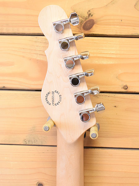 2020年製(Made in Indonesia)。限定生産のThinline Teleスタイルモデル!ホロー構造のボディーはトップにアッシュ材・バックにバスウッドを使用し程好い生鳴りを実現しています。ピックアップにはレオフェンダー考案で有名なG&L MFDを前後に搭載。腰のあるダイナミックなリアサウンドからエアー感タップリのセンター・フロントサウンドが楽しめます。使用感が少なく大変綺麗な個体です。フレット残量は8分山程と演奏性もバッチリ!ボディー裏のネックジョイントプレートがメーカーロゴ入りの物に交換。ヘッドのテンションピンもローラータイプにアップグレードされています。軽量で取り回しが良く生鳴りも良いシンラインモデル!気になった方は是非この機会に。 重量3.0kg。 付属品:オリジナルギグケース・紙類・レンチ