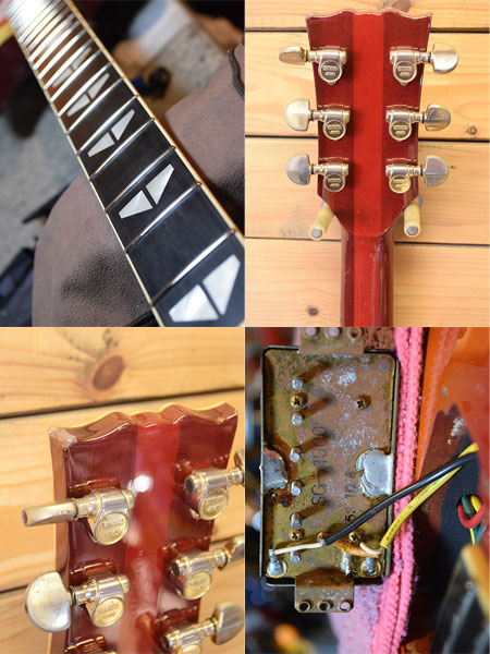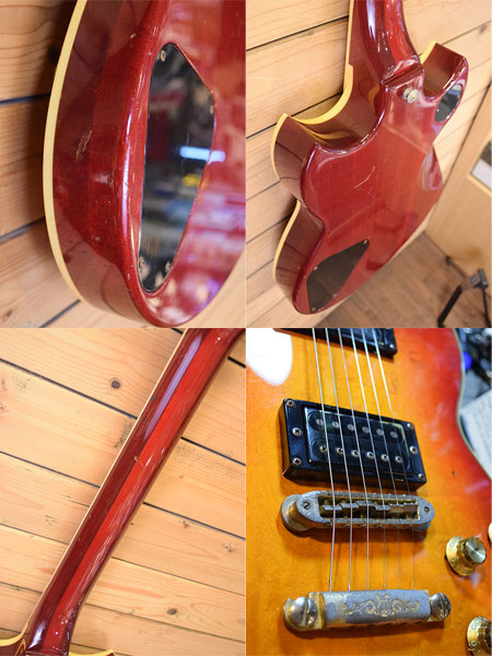 スモールヘッドになった初年度1978年製。マホガニー+メイプルトップボディーにエボニー指板を採用したマホガニーネックを使用。パワー感のあるオリジナルハムバッカー(OPG)はコイルタップも可能で歯切れの良いサウンドも演出できる仕様です。煌びやかで伸びの良いサウンドはSGシリーズの真骨頂!幅広いジャンルに対応した名器です。金属パーツのメッキ剥がれや傷など使用感はございますが、フレット残量は6〜7部山ほどと年式の割にたっぷり残っており演奏性も良い印象です。エスカッションは2点止め仕様に交換されていますがそれ以外はオリジナルコンディションです(ピックガードは欠品)。若いギタリストの方にも是非お試し頂きたい一本です。 重量:4.5kg 付属品:汎用ギグケース(History製)
