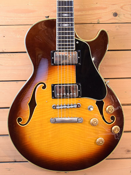 1970年代後半頃の渋谷ギターショップ「PACO(椎野楽器)」の渾身ブランド「ベスタグラハム」のセミアコモデルです。この技術は後のD'Angelicoにも生かされており、造りの良さから国内外に好評化を残した名シリーズでもあります。ボディートップ・バックには鮮やかなメイプル材を3Pで使用しており、覗かないと見えない内側までも美しいトラ杢材を使用しています。指板にはエボニー材を採用しポジションマークにも細やかなデザインを使用しています。ジャンボフレット採用や当時では高価なグローバーペグを採用し演奏性とチューニング安定性を妥協無く突き詰めた拘りの一本です。フロントピックアップは交換されておりリアPUとのバランスマッチングも取れています(交換PUはメーカー不明)。ブリッジはGOTOH製のナイロンサドルに交換されておりペグも近年のグローバーに交換されています。ボリュームPOT2個も近年交換されています。ヘッドトップはリフィニッシュされており「Graham」の文字が消えています。ボディートップにネジ穴を埋めた跡が2か所ございます(おそらくギターシンセピックアップ跡)。フレット残量は6〜7分山程ですがジャンボフレットなので演奏性は良い個体です。トータルバランスの良い良質な国産セミアコです。改造点が多い実用的な個体!大変お買得です! 重量:3.8kg 付属品:汎用ギグケース