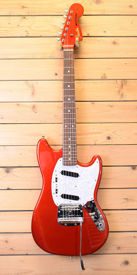 2010-12年頃の個体です。マッチングヘッド仕様の1969ムスタングです。コンター採用の抱え込み易いボディーにナット幅40mmのショートスケールネックを採用。煌びやかでミッドレンジ豊かな唯一無二のサウンドです。ペグの曇りはございますが目立った傷は無く全体に艶感も残ったコンディションの良い個体です。フレット残量も8分山以上とタップリ残っており演奏性もバッチリです。ネックジョイント付近にボルトオンあるあるの塗装クラックはございますが木部には問題ございません。着せ替え用の黒ピックガードも付属しています(オマケPGはやや使用感ございます)。ストラトやテレに比べ数が少ないモデルですのでお探しだった方はお早めに。 重量:3.5kg 付属品:汎用ソフトケース・黒ピックガード(おそらくフェンジャパ純正部品です)