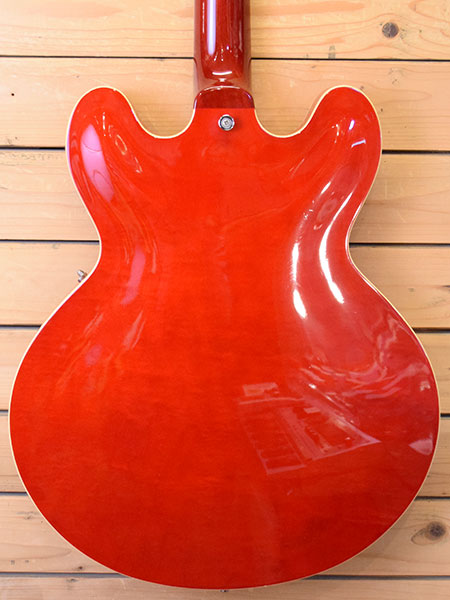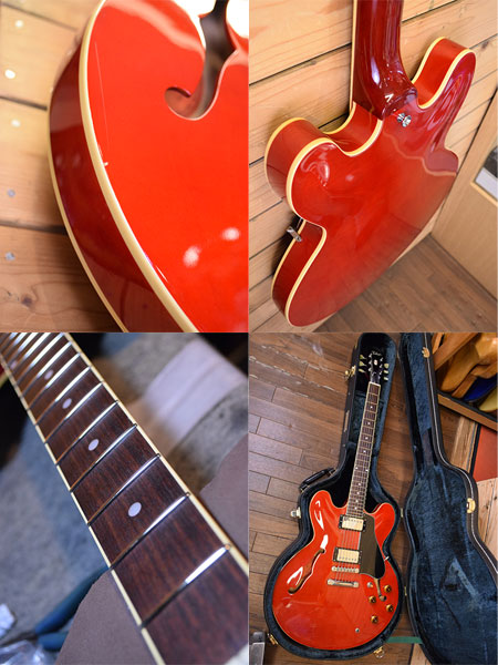 2003年製(日本製)。ドットポジションマーク・プレーントップのロングセラーモデル(2018年以降の定価は180,000円)。メイプルセミホーローボディーにマホガニーネックを組み合わせた王道スペック!ピックアップにはオリジナルPAF Vintage MK2が搭載されておりエアー感があり曇りのないサウンドが魅力です。ヘッド周りの傷やボディーにも多少の小傷がございますが程良く弾き込まれており鳴りの良い個体です。フレット残量は7〜8分山と演奏性の良い個体です。トラスロッドにも十分な余裕はございますので今後の調整も問題ございません。良い雰囲気の個体です。気になった方は是非この機会に。 重量:3.2kg 付属品:オリジナルハードケース