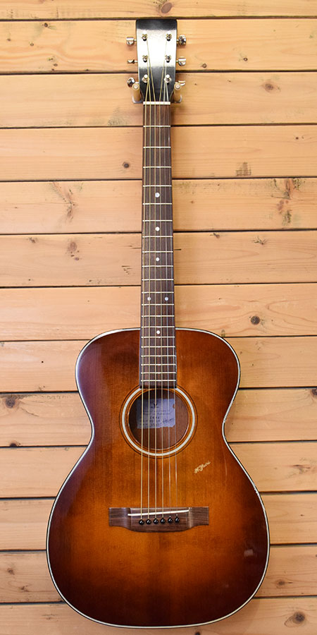 2004年製。日本製らしい丁寧な造りとアンティーク風なカラーで人気のモデル!島村楽器特注モデルで現行のSO-MHの前身機種でもあります。トリプルオーサイズのコンパクトボディーながらスプルース単板トップにマホガニー合板サイド・バックを採用した煌びやかで音量感のあるモデルです。使用感がほとんど無く大変綺麗なコンディション!カスタムライトゲージにて調整済みで弦高6弦12F2.7mm、1弦12F2.1mmとなっております。サドルも未加工なのでさらに弦高を下げる事も可能です。これから育て甲斐のある一本!お勧めです。 付属品:オリジナルハードケース・紙類・ステッカー。