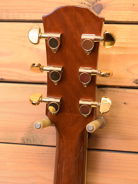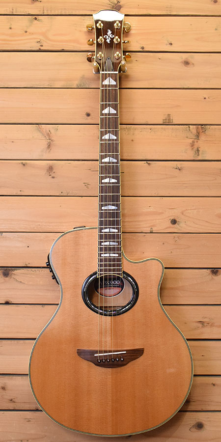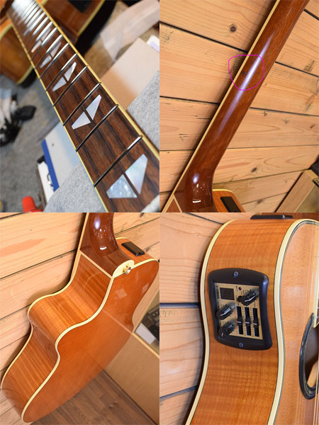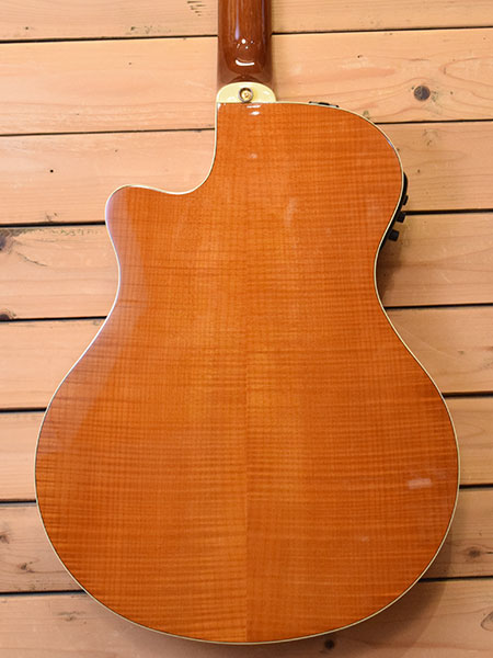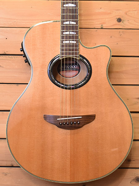 2007年製(定価110,000円+税)。ヤマハのエレアコモデルでも歴史のあるAPXシリーズの900グレード!単板スプルーストップに合板のメイプルサイド・バック材を採用。ボディー厚も薄めでホールド性が良く座っても立っても弾き易いバランスの良いボディーシェイプです。プリアンプにはチューナー内蔵のSystem-57を搭載。アンプからの音量感もありライブやレコーディングに重宝するモデルです。弦高はカスタムライトゲージにて調整済みで6弦12F2.7mm、1弦12F2mm(サドル残量6弦2.7mm/1弦2mm)となっております。目立った傷は無く全体的にも綺麗なコンディション!ネック裏に打痕が一か所ございます。エレアコに特化したシリーズなだけにバランスの良い印象です。気になった方は是非この機会に。 付属品:汎用ソフトケース。
