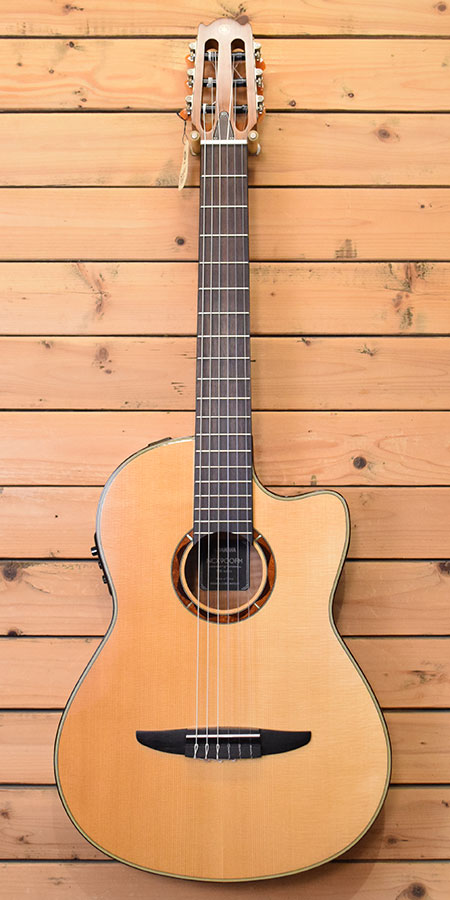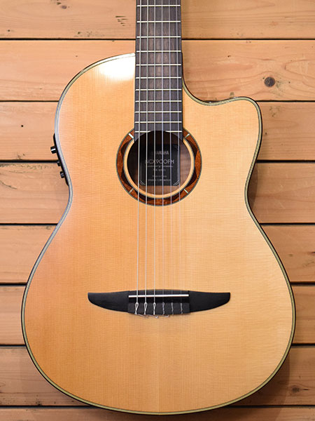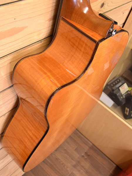 2014年製(定価90,000円+税)。指板幅・胴厚・12フレットジョイントなどクラシックギターの基本スペックを踏襲しながらハイフレットの演奏性に優れたシングルカットボディーや見た目にも鮮やかなフレイムメイプルをサイド・バックに採用した人気エレガットモデル!トップ単板モデルなので生鳴りも良く、イコライザーやチューナー付きのプリアンプは操作性も良く幅広い音作りも可能です。全体的に使用感の少ない綺麗なコンディション!ネック付け根付近にクリア傷があるもののその他は目立った傷の無い良品です。お勧めです。 付属品:オリジナルソフトケース。