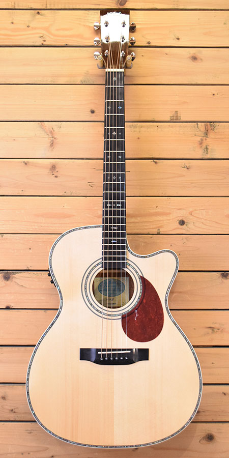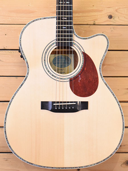 2022年製。630mmスケールを採用した現行モデル!装飾が美しく程好くコンパクトサイズのエレアコです。トップは単板スプルース、サイド・バックにはラミネートマホガニーを採用した音量感のある生鳴りが魅力です。暗いステージでも視認性が良いライト付きプリアンプを搭載。アンプからの出力も音量感がありしっかり使える印象です。使用感が殆ど無い大変綺麗なコンディション。弦高は6弦12F2mm、1弦12F1.7mmと演奏性も良い個体です。気になった方は是非この機会に。 付属品:オリジナルソフトケース・紙類。