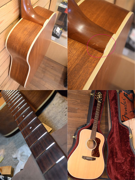 1995年製。ウェスタリー工場時期の個体です。ボディーはスプルーストップ・マホガニーサイドバックのオール単板仕様!フィニッシュは手触りの良いサテンフィニッシュが採用されています。ネックヒール端に修理跡がございます。弦高は6弦12Fで2.3mm、1弦12Fで1.8mm(ライトゲージ)と大変演奏製の良いセッティングとなっております。トップの色焼けも軽度で、サテンフィニッシュお約束の触れる所の黒ずみも殆ど無く美品です。おそらくケース保管が長かった個体と推測されます。本家USAメイドのお買得モデルです!気になった方は是非この機会に。 付属品:オリジナルハードケース。