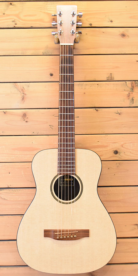 2006年製。ローズウッド指板・ブリッジ採用の初期仕様リトルマーチンです。全長865mm(スケール584mm)と大変コンパクトで取り回しの良いモデルです。程ほどの音量感もあり手軽に使えるアコギとしてビギナーからベテランまで人気のモデルです。ライトゲージ調整にて6弦12F2.3mm、1弦12F1.7mmとローアクションで弾き易いセッティングとなっております。指板に使用感が見られますがフレットの減りは軽度で残量8分山程と演奏性の良い個体です。弦を止めるピンはブラス製に交換されています。大変お買い得な一本です。気になった方は是非この機会に。 付属品:オリジナルギグケース・紙類。