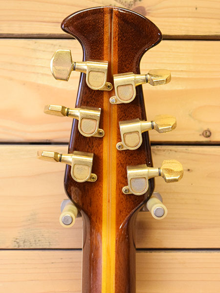 仕様から1980年代前半から半ば頃と思われる個体です(サウンドホール内のシリアルが無い為、正確な年式は不明です)。ディープボールバック・センターサウンドホールらしいファットでダイナミックな生鳴りが魅力のモデルです。プリアンプ部もボリューム・トーンコントロールのみながらレンジバランスが良くパワー感(音量)も十分で抜群なサウンド!現代のエレアコ群にも負けず劣らずの性能です。指板には使用による凹みがございますがボディートップの状態が良く年式の割に綺麗なコンディションの個体です。弦高は6弦12F2.1mmちリーアクションで演奏性も良い印象です。フレット残量はローフレットにやや弾き凹みは残る物の6〜7分山と演奏には問題ございません(もちろんビビりや音詰まりもございません)。4弦ペグビス交換(ビス下に穴埋め跡あり)。バッチリ調整済みの即戦力です。気になった方は是非この機会に。 付属品:オリジナルハードケース。