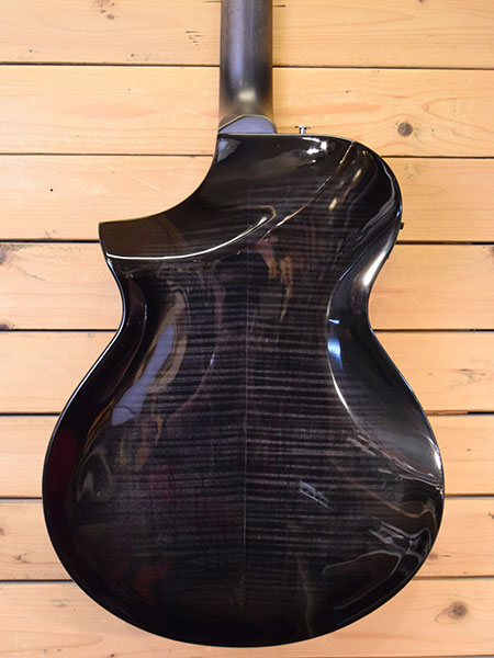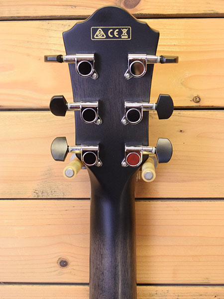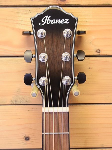 2021年製(現定価132,000円)。アイバニーズらしいプレイヤビリティーに全振りしたようなモダンなエレアコです。エレキのようなバック&トップコンター採用により抱え込み易く、更には大胆なヒールカット加工によりハイフレットのアクセスも大変良い印象のモデルです。ボディー材はオールメイプルが採用されており煌びやかな生鳴りです。使用感が殆ど無い大変綺麗な個体です。フレット残量も8〜9分山と満タン近く残っており演奏性も良いです。弦高はカスタムライトゲージ(11-52)調整にて6弦12F1.9mm、1弦12F1.4mmと調ローアクション!トラスロッドにも十分な余裕がございます。モダンで個性的なエレアコをお探しの方に是非お勧めです。 重量:2.1kg 付属品:オリジナルソフトケース・紙類・予備サドル