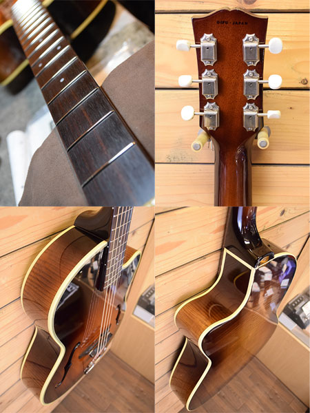 2002年製。小ぶりなボディーが魅力のピックギター!ショップオーダーの限定モデルです。横幅は374mmと比較的小ぶりながらヤイリらしい丁寧な仕上でブライトで音量感ある個体です。トップスプルース単版、サイドバックはラミネートメイプル仕様となっております。ネック角もしっかり付いていますが指板下に空洞はなく丈夫な造りとなっています。長期ケース保管されていたとみられ使用感が殆ど無い大変綺麗な個体です。10-47フォスファー弦にて調整済みでトラスロッドにも十分な余裕がございます。ボディートップやネック角にも狂いは出ておらず大変コンディションの良い一本です。重量も1.8kgと軽量!手頃で高品質なピックギターをお探しだった方は是非この機会に。 重量:1.8kg 付属品:オリジナルハードケース・レンチ