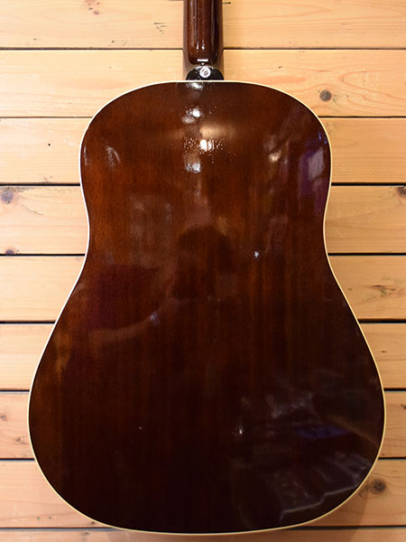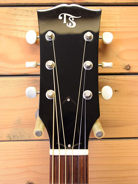 初期ヘッドロゴから2010年代前半頃の個体と思われます。量産が出来ない拘りの詰まった国産J-45レプリカモデル。オール単板はもちろんの事、50sらしいスキャロップブレーシングを採用し3連ペグや水牛骨ナット・サドル・ピンを採用。弾き込むほど音も外観も育つ導管も浮き出る極薄ラッカーフィニッシュなど手の込んだ仕上りです。マホガニーらしい迫力のあるサウンドが印象的です。エレアコ仕様となっておりハイランダー製ピックアップが内蔵されています。 使用感の少ない綺麗な個体です。とは言え10年以上経過&激薄ラッカー仕上げの為、写真では写り辛い小傷や擦り傷がございます事は予めご了承くださいませ。ボディートップコンディションやネックコンディションも良好で現在12-54ゲージで調整済みでトラスロッドにも十分な余裕がございます。弦高はサドル加工無しで6弦12F2.6mm、1弦12F2.1mmとデフォルトと思われる弦高となっております。まだまだ育て甲斐のある個体です。気になった方は是非この機会に。 付属品:オリジナルセミハードケース(ケースはやや使用感ございます)・レンチ ■通信販売の際は別途送料一律\1,500(離島は除く)