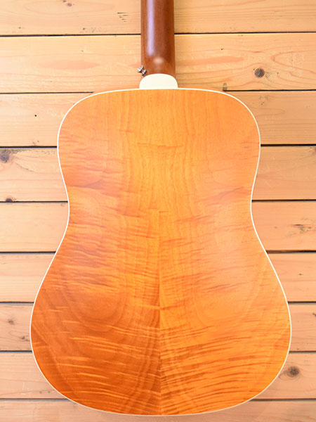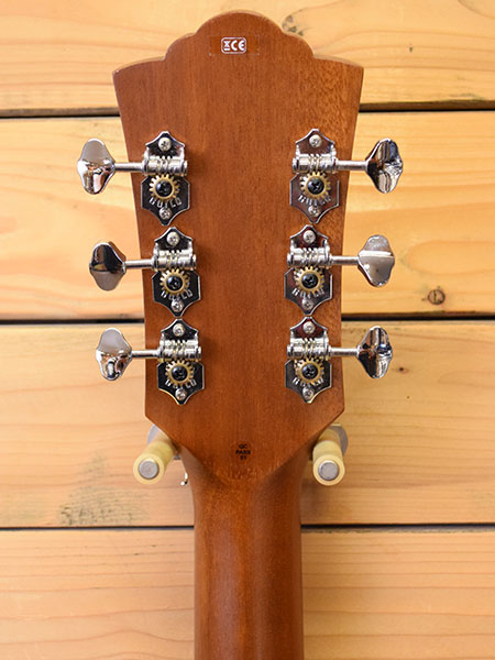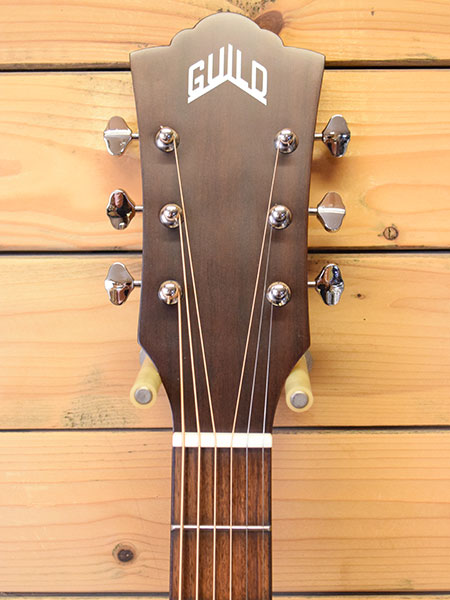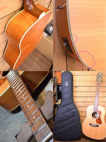 2022年製。スプルース単板トップに鮮やかなフレイムマホガニーをサイドバックに使用したドレッドサイズモデル!ボディーバックにはギルドのお家芸「アーチバック」が採用されておりエアー感のあるダイナミックな生鳴りが楽しめます。エレアコ仕様となっておりピックアップにはフィッシュマンのGT-1が採用されておりアンプからのサウンドもバランス良くパワフルに鳴っています。ボディーからネックまで艶消し塗装が採用されておりサラサラとした手触りが良いです。 ボディートップ下側に打痕と薄い塗装ムラがございますが全体的には使用感少な目な綺麗な個体です。現在12-53ゲージにて調整済みで6弦12F2mm、1弦12F1.6mmとローアクションで大変弾き易いセッティングとなっております。フレット残量も8分山以上とタップリ残っており演奏性もバッチリ!弾き易いエレアコをお探しだった方は是非この機会に。 付属品:オリジナルギグケース ■通信販売の際は別途送料一律\1,500(離島は除く)