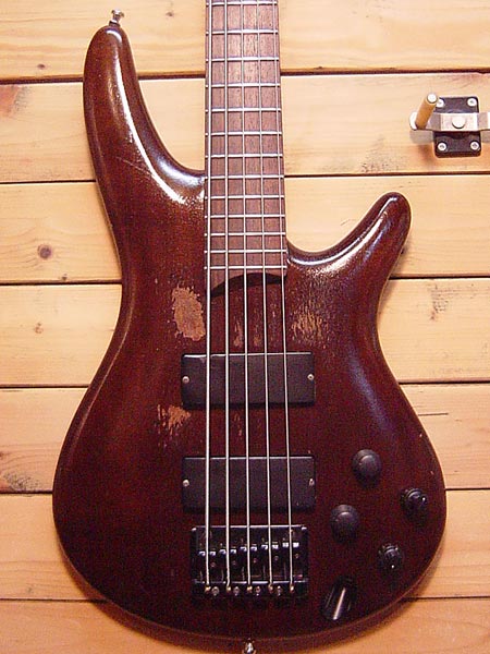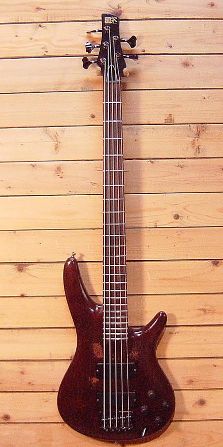 定価89,250円(2002年製)。マホガニーボディーにオリジナルアクティブプリアンプを内蔵した5弦ベース!パワーバランスが大変良く、コントロールもVari-Mid+3EQとサウンドメイクの幅も広いです。ネックにはWengeとBubingaの5ピースと強度も申し分無し!歴戦の傷跡はございますが、バッチリ調整済みですので安心してご使用頂けます!重さも3.6kgと5弦にしては大変軽量!取り回しも良くお勧めです!