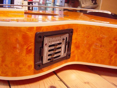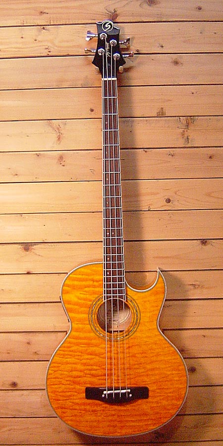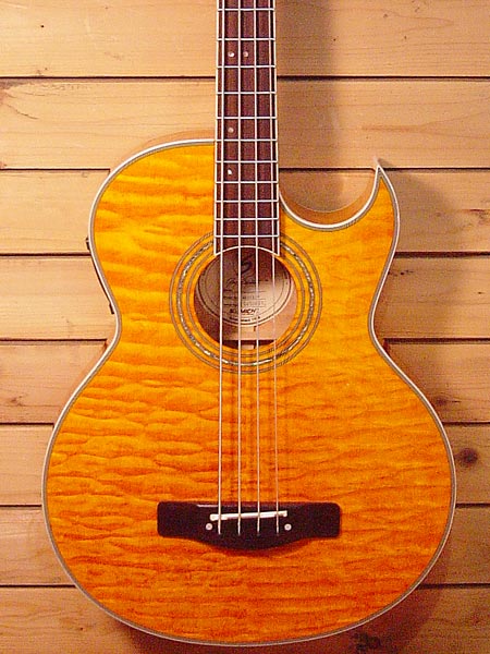 定価73,500円。キルトメイプルトップが大変美しいお手頃なエレアコベースです!フィッシュマン製のプリアンプ搭載でウォームでローミッドの効いたサウンドから、音の輪郭がハッキリしたモダンなサウンドまでと幅広くメイク出来ます!使用感も少なく綺麗なコンディション!お手頃なアコベをお捜しだった方には是非お勧めです!