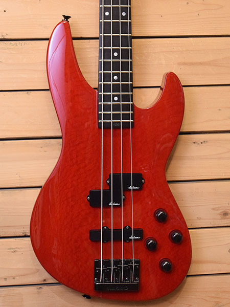 1991年製(Made in Japan)。ハードロックバンドWingerのフロントマン Kip Wingerシグネイチャーモデル!製造期間1年と短く幻のモデルでもあります。ボディー材には杢目も鮮やかなLacewoodが採用されておりブライトな低音が印象的です。2EQ付きアクティブプリアンプ内蔵でサウンドレンジも広いモデル!細身なボディーシェイプにスルーネック構造とプレイヤビリティーも申し分なしです。ヘッドロゴにはレアなプロフェッショナルロゴが採用されている個体です。年式の割に使用感が少ない大変綺麗な一本です。80年代のハードロック・メタル系ベースでこれだけ良いコンディションの物も見かけなくなってきました。お探しだった方はお早めに!