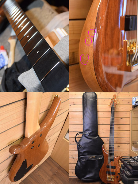 2000年頃製造と思われる個体です。人気国産コンポーネントブランド「チューン」の代表モデル!ボディーにはマホガニーとウェルナット材を組合わせ指板にはエボニー材を分厚く贅沢に使用しています。日本製らしい高度な木工技術も手伝って低音の輪郭がある煌びやかなサウンドが楽しめます。プリアンプ部にはオリジナルの3EQ付アクティブプリアンプが採用されスラップ向きのドンシャリサウンドからウォームでミッドレンジ豊かなサウンドまで幅広くメイクできます。ボディーサイドに小傷がございますが全体的には使用感の少ない大変綺麗な個体です。演奏性も良く幅広いジャンルに対応できる優秀なモデルです。お探しだった方は是非この機会に! 付属品:オリジナルギグケース。