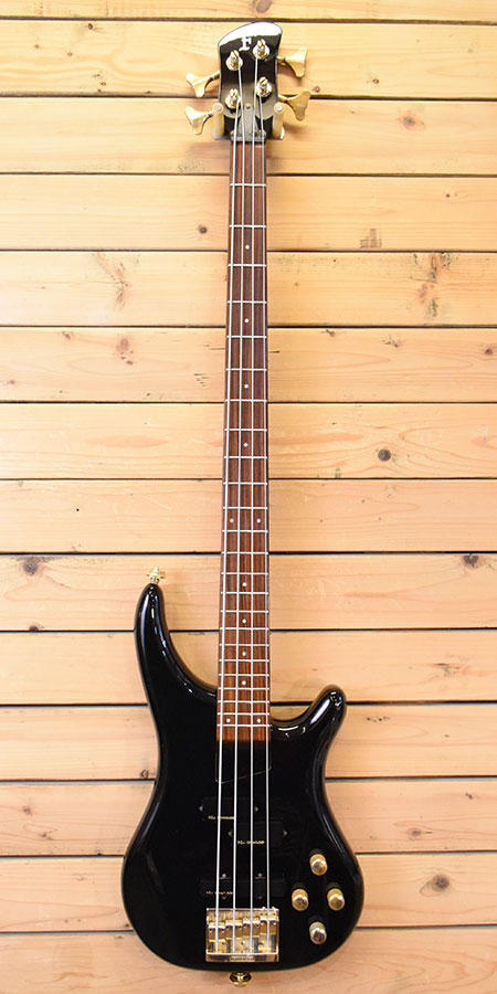 1990年代前半頃の個体。当時D'ERLANGEのSEELA氏やGRAND SLAMの吉川裕規氏が使用していた事でも有名な名器。日本製。コンパクトなボディーシルエットにロングスケールネックを採用。ハイパワーな2EQ付アクティブプリアンプを内蔵し、当時ではまだ珍しかったジムダンロップ製のストラップロックピンを採用した本格仕様!しかもヘッドロゴは「F」のみと特別感が伝わるモデルでもあります。金属パーツの劣化はややございますが全体的には使用感の少ない大変綺麗なコンディション。ブリッジのイモネジ数か所新品交換済み。プリアンプのPOTを1つ新品交換するなどバッチリ調整&クリーニング済みの即戦力です。気になった方は是非この機会に。 付属品:汎用ソフトケース。