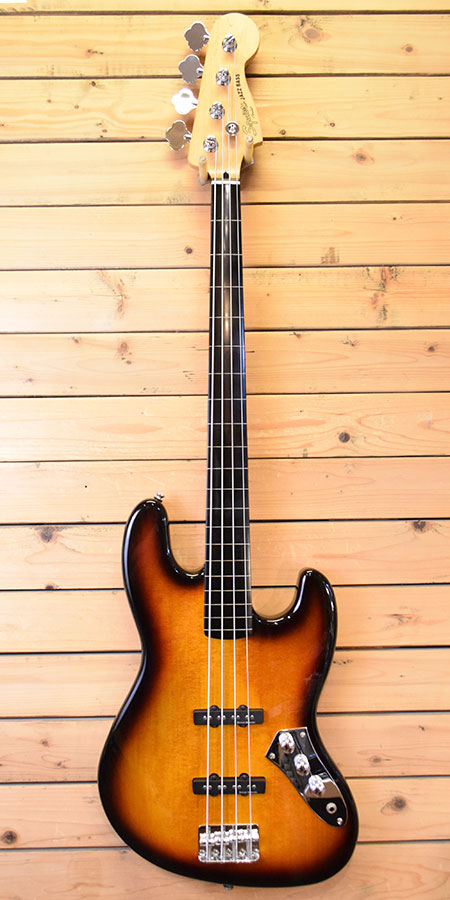 2006年製。ビンテージモデファイシリーズのフレットレスジャズベモデル。ボディー材にはAgathisが使用されピックアップにはパワー感のあるDuncan Designedピックアップが搭載されています。ジャコパス風なリアメインでも存在感のあるサウンドです。指板には硬質な樹脂(Ebonol)が使用され伸びの良い輪郭のあるサウンドが演出できます。指板に弦傷はございますが全体的には使用感少な目で綺麗な個体です。お手頃なフレットレスをお探しだった方に是非お勧めな一本です。 重量:4.1s 付属品:汎用ソフトケース。