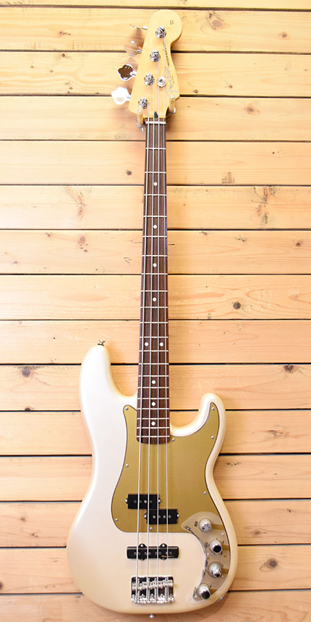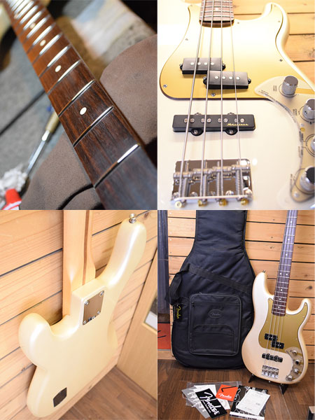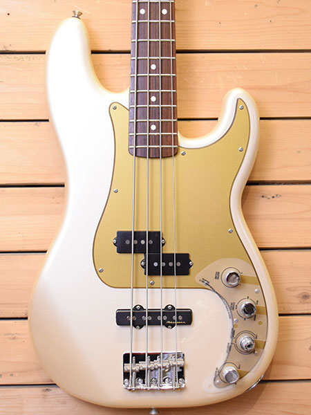 2008年製。PJレイアウトにnoiselessピックアップ+3EQ付アクティブプリアンプ搭載モデルです。グリップは握りやすいJBネックが採用されパワフルでトーンレンジも広いバーサタイルな一本!アノダイズド風ピックガードもイケてます! 使用感の少ない綺麗な個体です。経年劣化によりトップコートが黄ばみ本来はシルバー風なボディーカラーがシャンパンゴールドに変化していますが艶感もあり綺麗な状態です。45-100ゲージにて調整済みでトラスロッドにも十分な余裕がございます。フレットの減りは殆ど無く8〜9分山と満タン近く残っています。ローアクションで演奏性も良い個体です。気になった方は是非この機会に。 重量:4.1kg 付属品:オリジナルギグケース・紙類・レンチ ■通信販売の際は別途送料一律\2000(離島は除く)