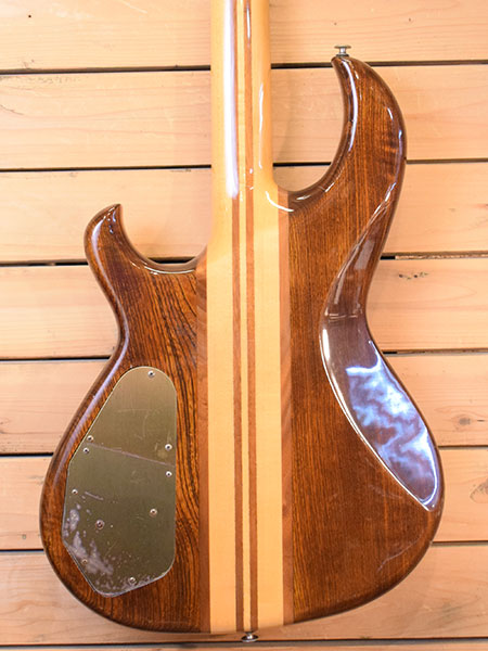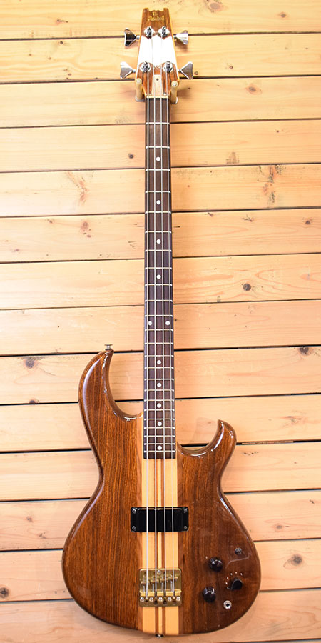 1980年製。近年復刻モデルが出た事でも話題の名作「SB-1000」のオリジナル個体(前期仕様)です。当時から名立たるベーシストに愛用されていた名機です。強度に優れたメイプル+ウォルナット5Pスルーネック(指板はハカランダ)にオリジナルアクティブ回路「B.B.サーキット」が搭載されています。6WAYでノーマル→ミッドレンジが変化する切替が可能。ワイドレンジからB.C.Richのようなローミッドが強調されたファンクなサウンドまで演出出来ます。 外装は年式の割に綺麗な個体です。ネック周りは、トラスロッドはほぼ終点(締切り)ですが現在45-100ゲージで調整済みでタイトストレートとなっており弦高もローアクション(4弦12F1.9mm・1弦12F1.5mm)と大変弾き易い印象です。3弦ペグとアクティブ・パッシブ切替えのミニスイッチに若干の曲がりがございますが使用には問題ございません。お探しだった方は是非この機会に。 重量:4.8kg 付属品:汎用ソフトケース ■通信販売の際は別途送料一律\2000(離島は除く)