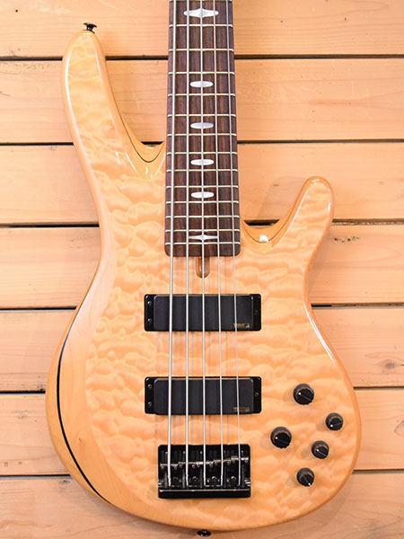 2004年製。ロングセラー5弦モデルの初年度個体です。初期モデルはブラックパーツに3Pメイプルネック仕様となっています。35インチ(889mm)スーパーロングスケールネックを採用。程良いテンション感とロングサスティーンが魅力のモデル。3EQ付アクティブアクティブプリアンプが内蔵されてウォームな柔らかいサウンドから硬質でパワフルなど幅広いサウンドメイクが可能です。 ネック裏に使用による若干の黒ずみはございますが全体的には使用感少な目な綺麗な個体です。45-125ゲージにてネック調整済みでトラスロッドにも余裕がございます。フレット残量も8分山以上残っており演奏性も良い個体です。コスパと質の良い5弦モデルをお探しの方に是非お勧めな一本です。 重量:4.3kg 付属品:汎用ソフトケース ■通信販売の際は別途送料一律\2000(離島は除く)