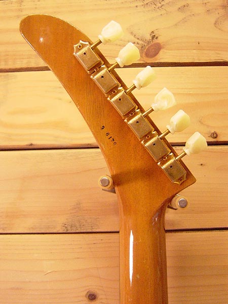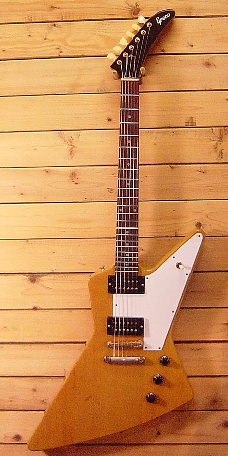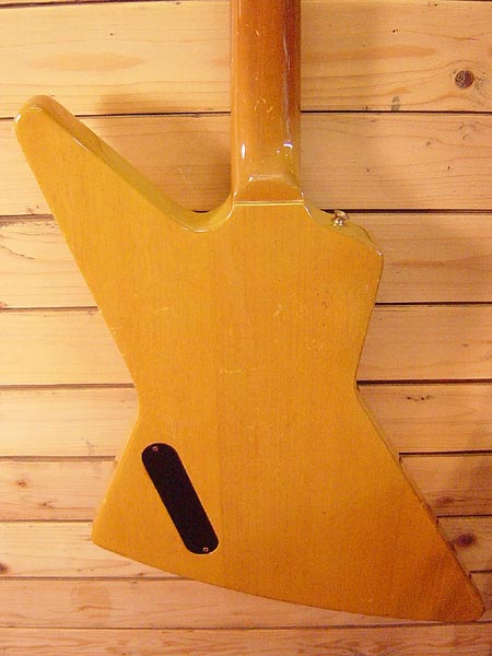 1989年製のミントコレクション期のエクスプローラーモデルです。マホガニーボディー&ネックで伝家の宝刀「DRY」ピックアップを2発搭載!(カバーは外されています)程よいパワーとしっかりした低音が大変心地よくヴィンテージ風サウンドからモダンサウンドまでと幅広く使える一本です。歴戦の傷跡は細かくございますがフレットは7分以上残っており鳴りも大変GOOD!重量も4.1Kgとこのモデルでは理想的なウエイトです。お勧めな一本です!! 汎用GIGケース 付属。