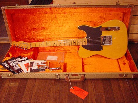1994年製のVintageSeries「52'Tele」 王道&鉄板のブラックガードにバタースコッチブロンドカラー!問答無用にかっこ良い一本です!重量は4.2kgとバランスの良いウエイトで、ボディーは木目の良い2Pアッシュを使用。シャープで抜けが良く理想的なテレキャスサウンドです!ボディー下に塗装剥げの修復後はございますが全体的に良い雰囲気となっております。フレットも8分以上は残っており、これから使い込んでまだまだ味を出して頂きたい一本です!6wayブリッチやカバーなどもしっかり付属!大変お買い得な一本です。 6wayブリッチ・ブリッチカバー・ツイードハードケース・その他紙類 付属。
