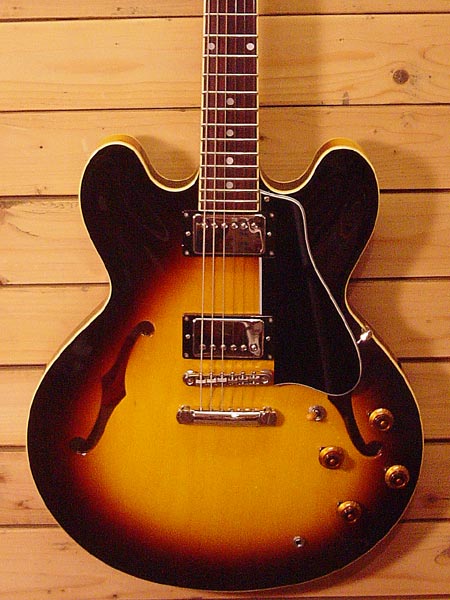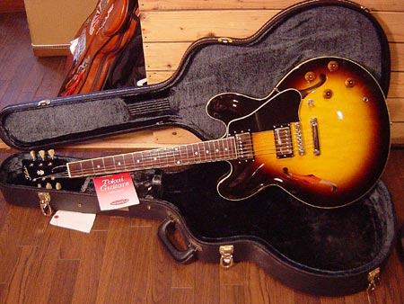 定価105,000円(現在131,250円)2001年製Made in Japan!ES-335レプリカモデルです!流石は老舗東海楽器製!細部まで丁寧な造りはプレイヤーをやる気にさせてくれます!箱鳴りも大変良く、太さと輪郭のあるサウンドです!質の良いセミアコをお捜しの方には是非ともお勧めしたい一本です!使用感もあまり無く綺麗なコンディション! オリジナルハードケース 付属。