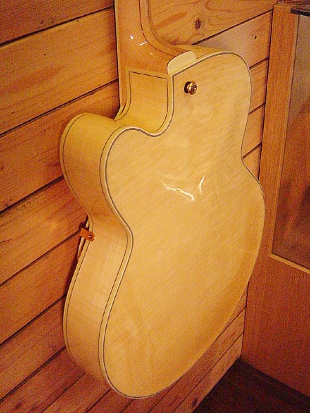 定価105,000円。見た目にも大変美しいフレイムメイプルを贅沢に使用した一本!ふくよかなミッドと輪郭のある高域がとても良いバランスのフルアコです。ミッドから低域を強調されたい方には付属のローズウッドサドルに変える事をお勧めいたします。ジャズはもちろんですがブライトなロックにも大変お勧めです。多少金属部品の曇りなどはございますが全体的には綺麗なコンディションです。 オリジナルハードケース・ローズサドル・紙類 付属。