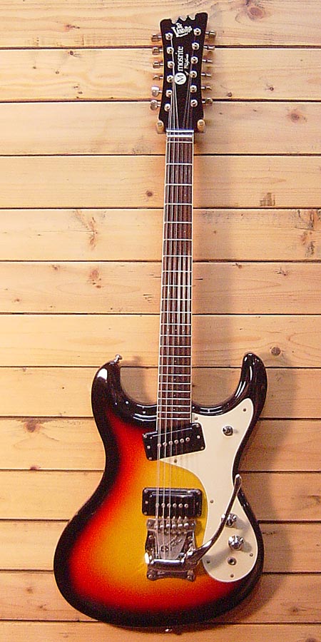 中古市場でもあまりお目にかかれないモズライトの12弦モデル!倍音の広いオリジナルのピックアップと副弦のハーモニーの相性は大変良く、アームによるヴィブラートもこのモデルならではです!ボディーサイドに打痕が2箇所ほどございますが全体的には使用感も少なく綺麗なコンディションです。 オリジナルGigケース 付属。