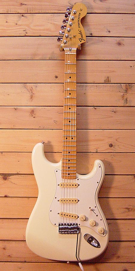 1990年頃のモデル!70年代シェイプのストラトを基本にメイプルスキャロップ指板とディマジオピックアップをマウントしたイングヴェイ仕様のレアモデルです。ペグにはGOTOH製を使用、ピックアップなども含めコストパフォーマンスの高い一本です。年代の相応の細かい傷や使用感などはございますが、フレットも7分以上とまだまだタップリ残っており、もちろんしっかり調整済みですので安心してご使用頂けます。 ソフトケース 付属。