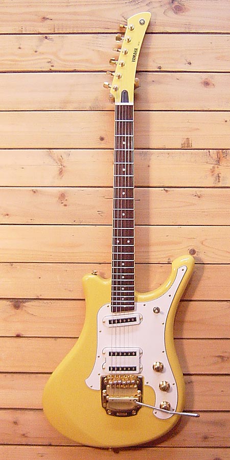ヤマハ伝統のシルエットでグループサウンズから現在のエモロックまでと幅広いプレイヤーに人気のモデル!独得のボディー形状ですが大変バランスが良くプレイヤビリティーも抜群!リアとセンターが一体になったピックップはツマミ(一番下)でバランス調整可能。エッジの効いたリアサウンドは勿論、ミックスのハーフトーンサウンドもかなり使えます!若干の金属パーツの曇りなどはございますが、大きな傷など無く全体的には綺麗なコンディションです!残念ながら製造中止になったモデルですのでお捜しの方はお早く。 専用ソフトケース 付属。