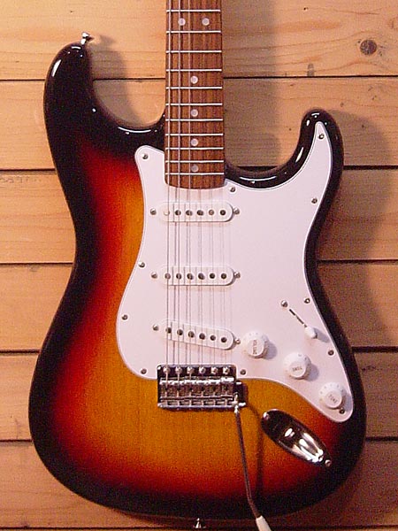 アッシュボディーにラージヘッドのお馴染み人気モデル!サーキット内はCTSポットやCRLセレクターなどでグレードアップ&オーバーホール済み!ピックガードにはシールドプレートをサンド、カラハム製のブリッチサドルやスチールトレモロブロックを使用、ペグにはフェンダー製のマグナムロックペグに変更するなど実用性の高い仕様となっております。アッシュボディーも手伝って超ロングサスティーンサウンド!フレット残量も8〜9分とタップリ残っております! 汎用ソフトケース 付属。