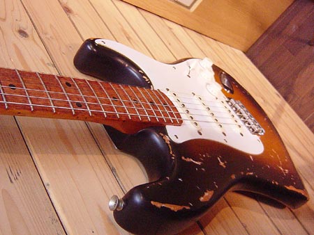 2007年製。ロードウォーンではなく、工房によるハードレリック加工が施された雰囲気の良い一本!電気系の交換などは無くオリジナルパーツです。フレットの減りも殆ど無くプレイヤビリティーも高い一本です。レリック加工後のトップラッカーはございませんのでまだまだ味の出る仕様となっております。ステージ上でのインパクトも抜群です! オリジナルギグケース 付属。