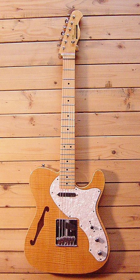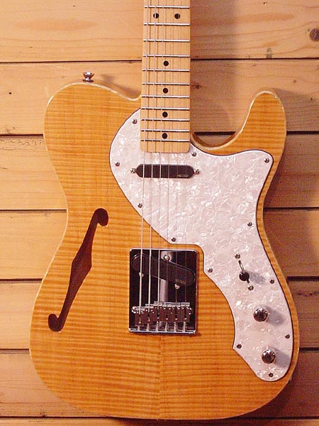 フレイムトップが美しいシンラインモデルです!ピックアップはEMGにリア・フロント共に交換、ブリッチサドルもチタン製に交換するなど大変お買得な一本です!サウンドもホロウボディーならではの箱鳴りとEMGピックアップのクリアな音が良くマッチしています。使用感も少なく綺麗なコンディション! オリジナルソフトケース 付属。