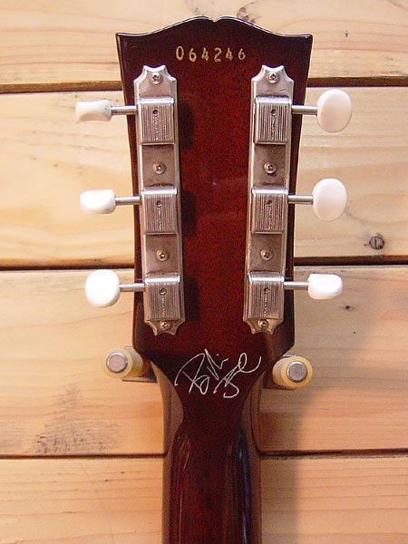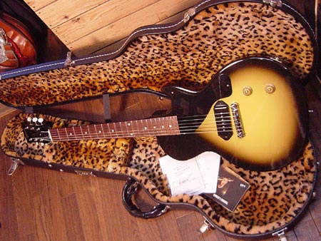 2006年製。GreenDay ビリージョーのシグネイチャー モデル!本人使用の1956年製ジュニアを忠実に再現しつつ、ネックグリップを程よい太さに、ピックアップにはオリジナルのH-90を搭載するなどヴィンテージを基本に本人の希望が盛り込まれた一本に仕上がっています。パワーバランスが大変良く、しっかりした低音と音抜けのバランスが絶妙です!彼を知らないレスポールジュニア好きにの方にも納得頂ける一本です。 オリジナルハードケース・紙類 付属。