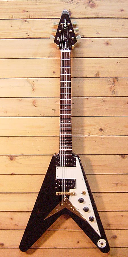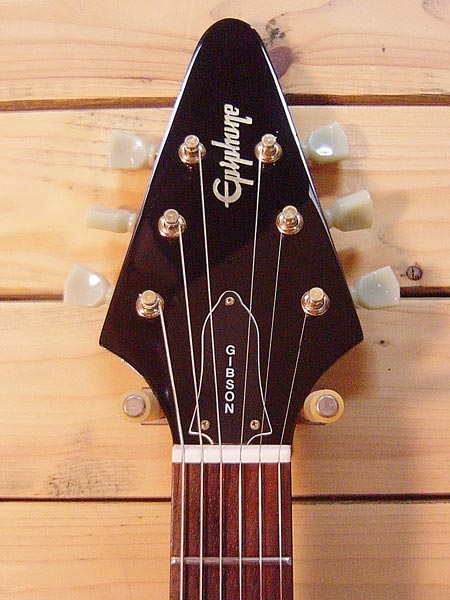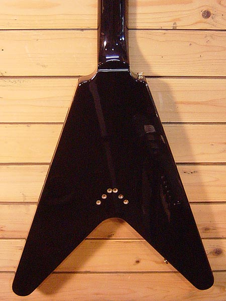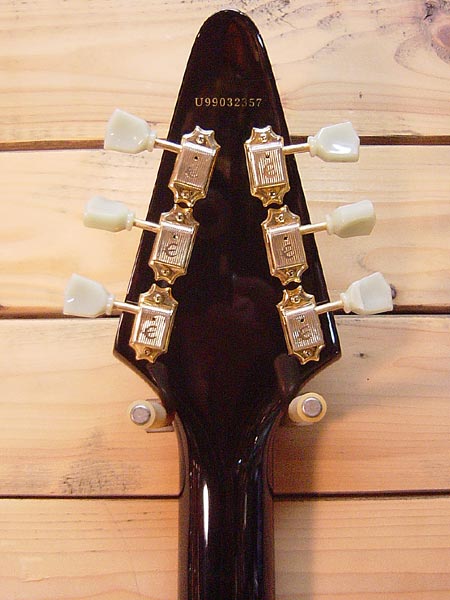 1999年製。1958フライングV レプリカモデル!最大の特長でもある弦のボディー裏通しにより、チューン-Oとも違う鳴りの良さが人気です!ブーメランプレートがルック的にもかなりGOODです!リアピックアップにはGOTOH製のヴィンテージモデルに交換!前後ともカバー無しのオープンになっています。年代相応の傷など使用感はございますが、バッチリ調整済みですので安心してプレイ頂けます。 ソフトケース 付属。