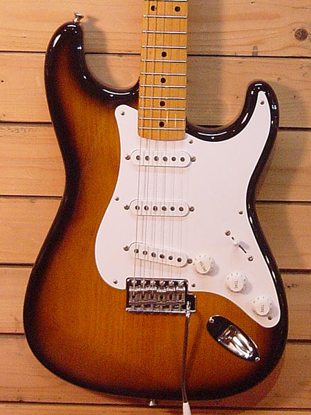 Oシリアル(1997〜2000年)頃のモデル。アルダーボディーにメイプルネックの1957スタイル!硬すぎず、でも音抜けの良いサウンドが特長の一本。5WAYセレクターなのでハーフトーンサウンドも気持ち良く出す事が出来ます!ペグなどハードウェアに若干曇りはございますが、全体的には使用感が少なく大変綺麗な一本です! ソフトケース 付属。