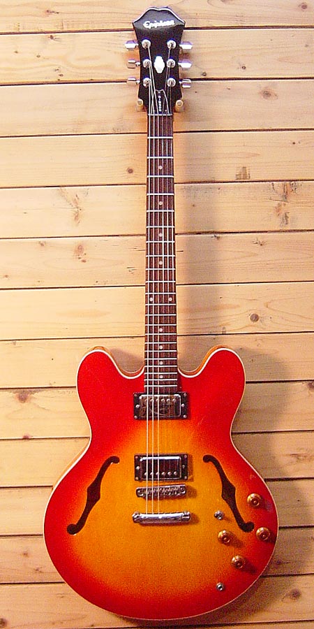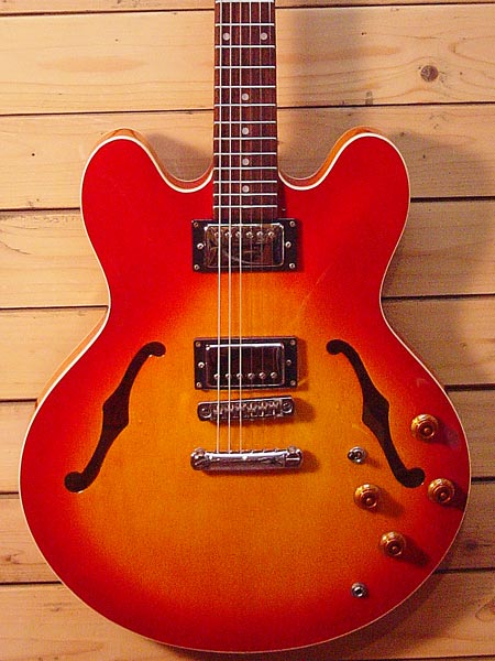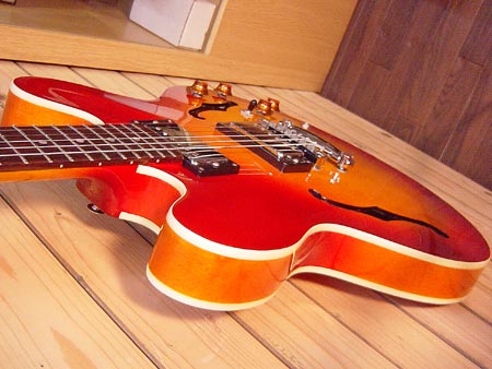 リーズナブルながら非常にコストパフォーマンスの高い人気の335タイプセミアコモデル!セミアコならではのアコースティックなサウンドとオリジナルハムバッカーピックアップのバランスが大変GOOD!ジャズからロックンロールまでと幅広く使えます。ピックガードは欠品していますが、全体的には綺麗で大変お買得な一本です。 オリジナルハードケース 付属。