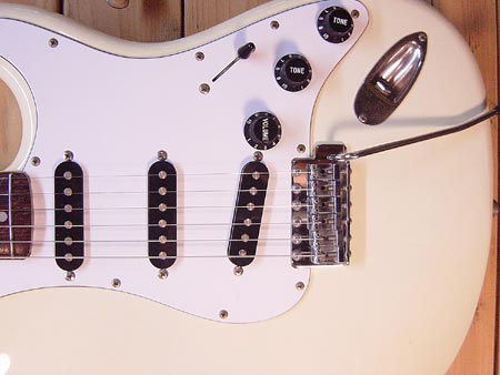 Made in Japan期(1986年製)のフェンダー姉妹ブランド スクワイヤー製ストラト。アルダー2Pボディーにローズ指板ラージヘッドの王道70年代スタイル!ピックアップはオリジナルですが、POT類にはUSA製(CTS)に交換されており、ジャックはスイッチクラフト(クライオ)に交換など即戦力間違いなし!フレット残量も8分以上と弾き心地もGood!
