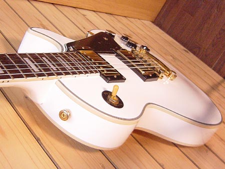 2007年製(定価52,500円)。老舗「東海楽器」のレスポールカスタムモデル。クールで紳士な白カスタム!パワーバランスの良い王道ハムバッカーサウンドがたまりません!使用感も少なく綺麗なコンディション。弾き易くお勧めな一本です! ソフトケース 付属。