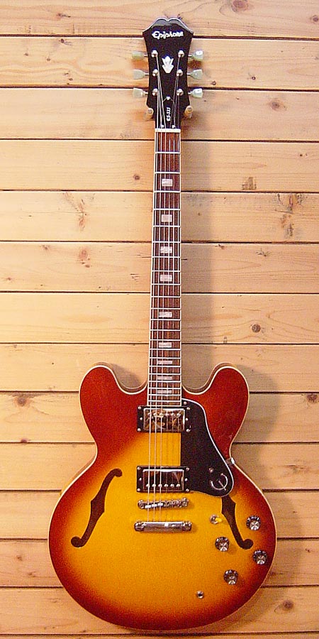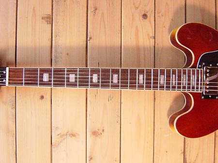 2009年製。イケベ楽器オーダーのブロックインレイモデル!意外にコピーモデルでは少ない60年代以降のスモールブロックポジションマークを採用!ソリッドとホロウの良さをバランス良くミックスさせた人気の335モデル。使用感も少なく大変綺麗なコンディション!大変お買得な一本です。 ソフトケース 付属。