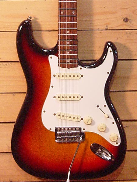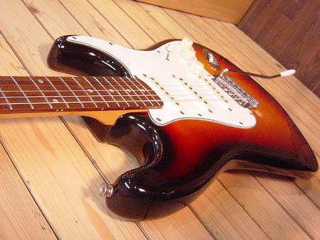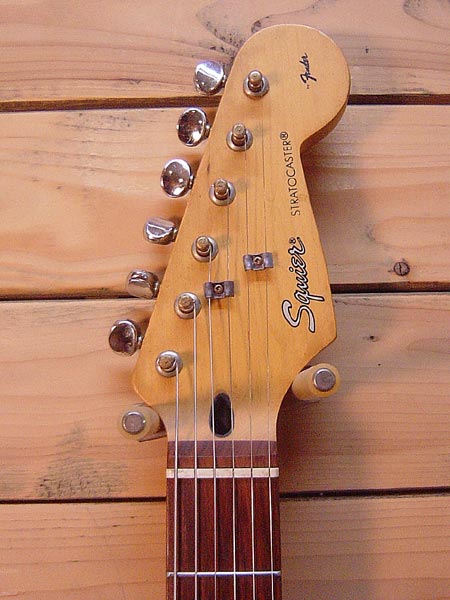 フェンダーの姉妹ブランド「スクワイヤー」の60'sスタイルストラトキャスターです。シリアルの無い時期の1990年代後半のシリーズ。コストパフォーマンスモデルながらボディー材にはしっかりアルダーを使用しており良質な生鳴りの一本です。ピックアップはセラミックマグネットの廉価モデルですが音抜けが良く歪みとの相性もGood!多少使用感はございますがしっかり調整済みですので安心してプレイ頂けます。 汎用ソフトケース 付属。