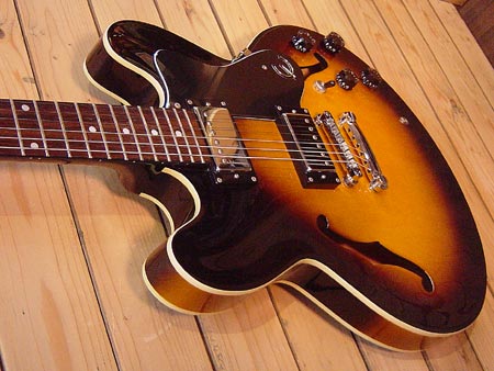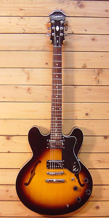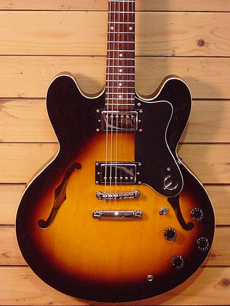 ギブソンの姉妹ブランド「エピフォン」のES-355タイプ(セミアコ)モデル!ソリッドギターとホローギターの良いとこ取りの様なお馴染みのモデル!ジャズ、ブルース、ロックと幅広く使えるのも魅力の1つです!使用感も少なく大変綺麗なコンディションです!お手頃なセミアコをお捜しだった方には是非お勧めです。 オリジナルハードケース 付属。