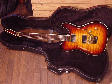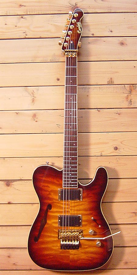 人気の国内カスタムギター工房「コンバット」のオーダーシンラインモデル!ボディー材にはマホガニーバックに大変目の鮮やかなキルトメイプルトップを使用しております。ピックアップにはEMG 89を搭載、5WAYスイッチを採用。Rハム、Rシングル、ハムミックス、Fシングル、Fハム とサウンドバリエーションも豊富です。セミホローでロック式トレモロでアクティブピックアップ、プレイヤー次第で何にでも対応出来る一本です!塗装も大変薄めで生鳴りもGOOD!多少使用感はございますがまだまだこれからの一本!大変お買い得です。