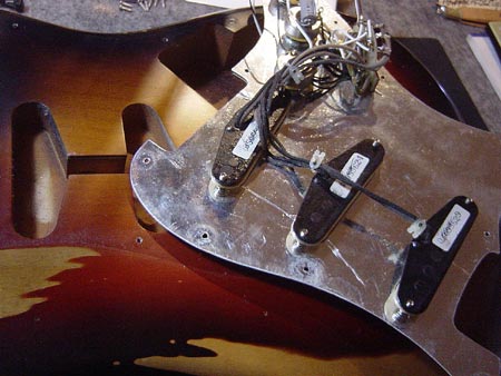 定価134,400円。元レッチリのギターリストJohn Fruscianteのストラトを再現したモデル!ハードレリック加工にピックアップにはSeymourDuncan Antiquity(Texas Hot)を採用、電装パーツにもCTSポットやSRLセレクターなど厳正パーツを使用しております。ジャンボフレットでプレイヤビリティーも高い良質なストラトキャスターです。ヘッドロゴは後から貼られた物です。フレット残量も8割以上としっかり残っておりお買得な一本です。 ESP製ギグケース 付属。